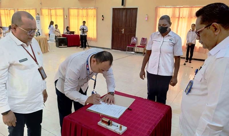Serah terima jabatan Kepala LPP RRI Merauke disaksikan Koordinator Wilayah (Korwil) I LPP RRI , Angelberthus Silubun, bertempat di Gedung Kanol Say LPP RRI Merauke, Senin, 14 Agutus 2023.