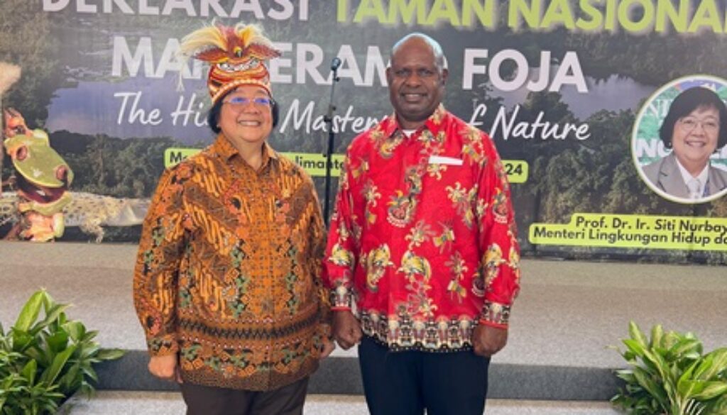 PENAJAM | Kementerian Lingkungan Hidup dan Kehutanan (KLHK) mendeklarasikan penetapan Taman Nasional Mamberamo Foja, Papua, pada Selasa, (15/10/2024).