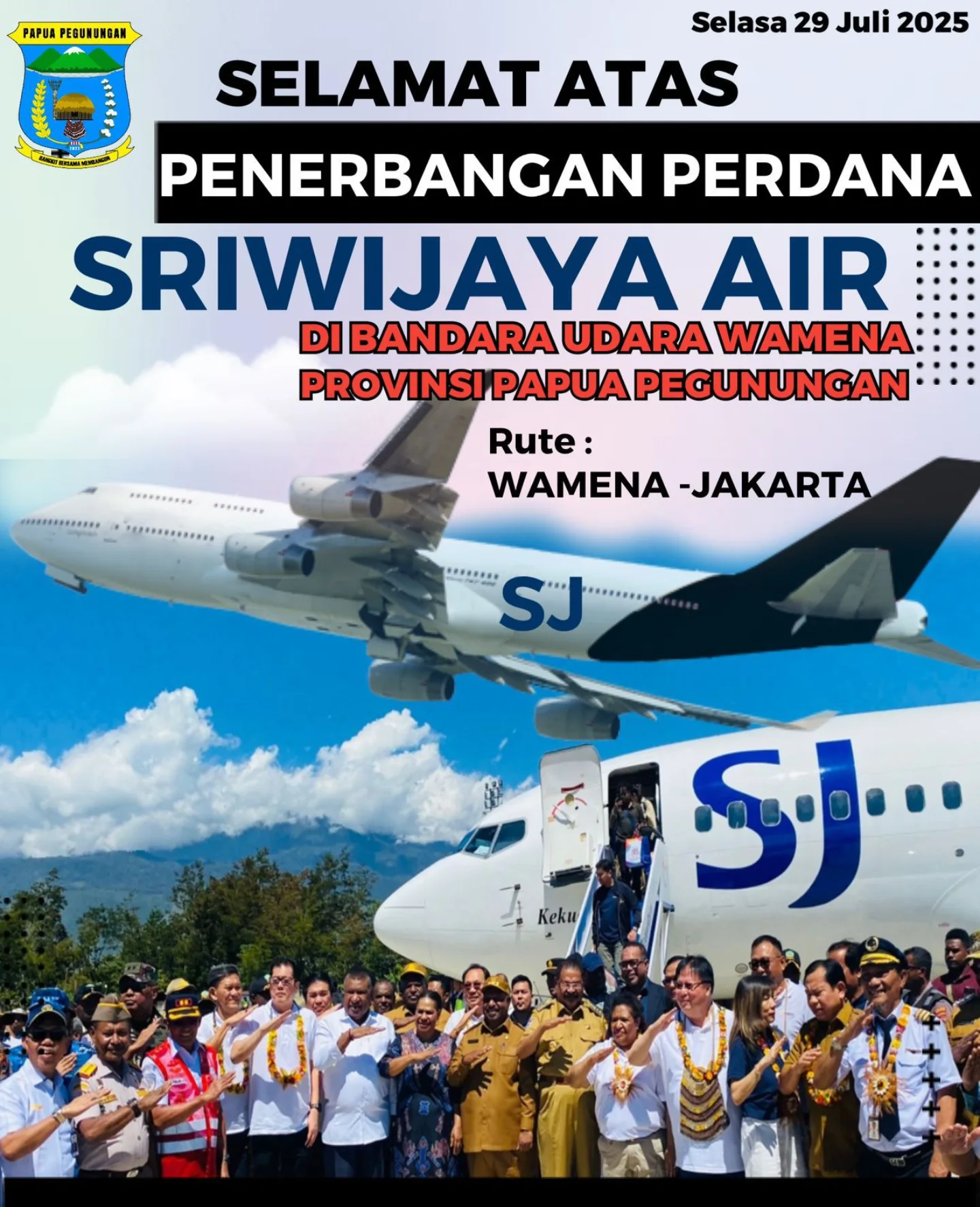 WAMENA | Pesawat Boeing 737 seri 500 milik meskapai nasional Sriwijaya Air, Selasa 29 Juli 2025, sukses terbang perdana ke Wamena (WMX) Kabupaten Jayawijaya, Papua Pegunungan.
