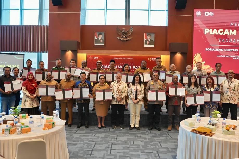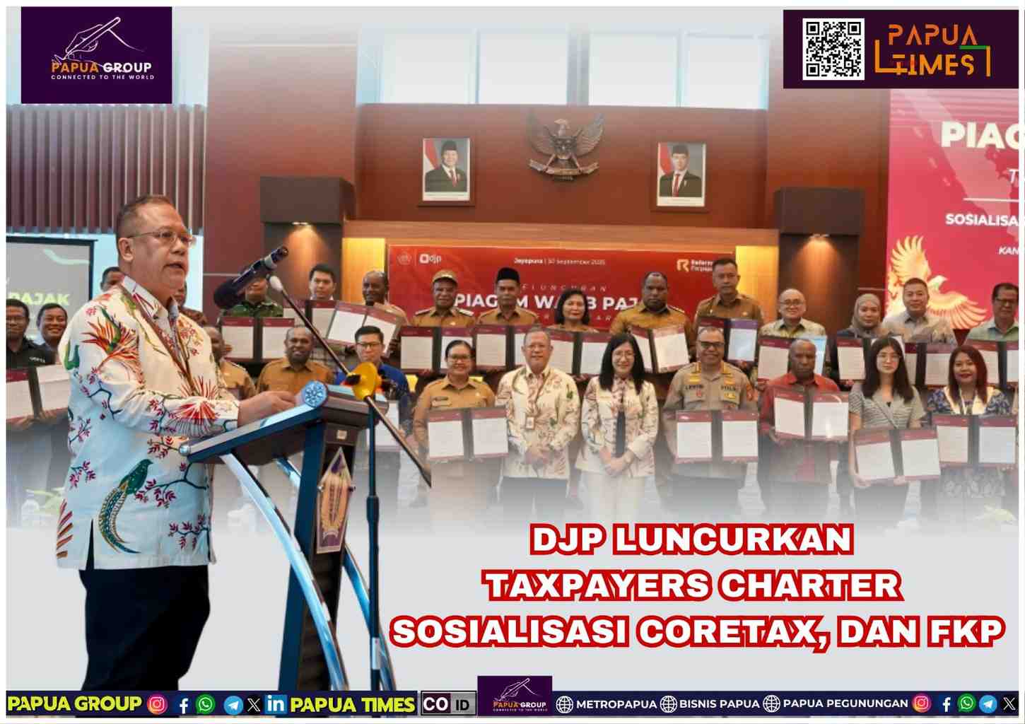 JAYAPURA | Kantor Wilayah Direktorat Jenderal Pajak Papua, Papua Barat, dan Maluku (Kanwil DJP Papabrama) bekerja sama dengan Kantor Pelayanan Pajak (KPP) Pratama Jayapura menyelenggarakan Peluncuran Piagam Wajib Pajak (Taxpayers’ Charter), Sosialisasi Coretax, dan Forum Konsultasi Publik (FKP) 2025, Selasa, 30 September 2025.