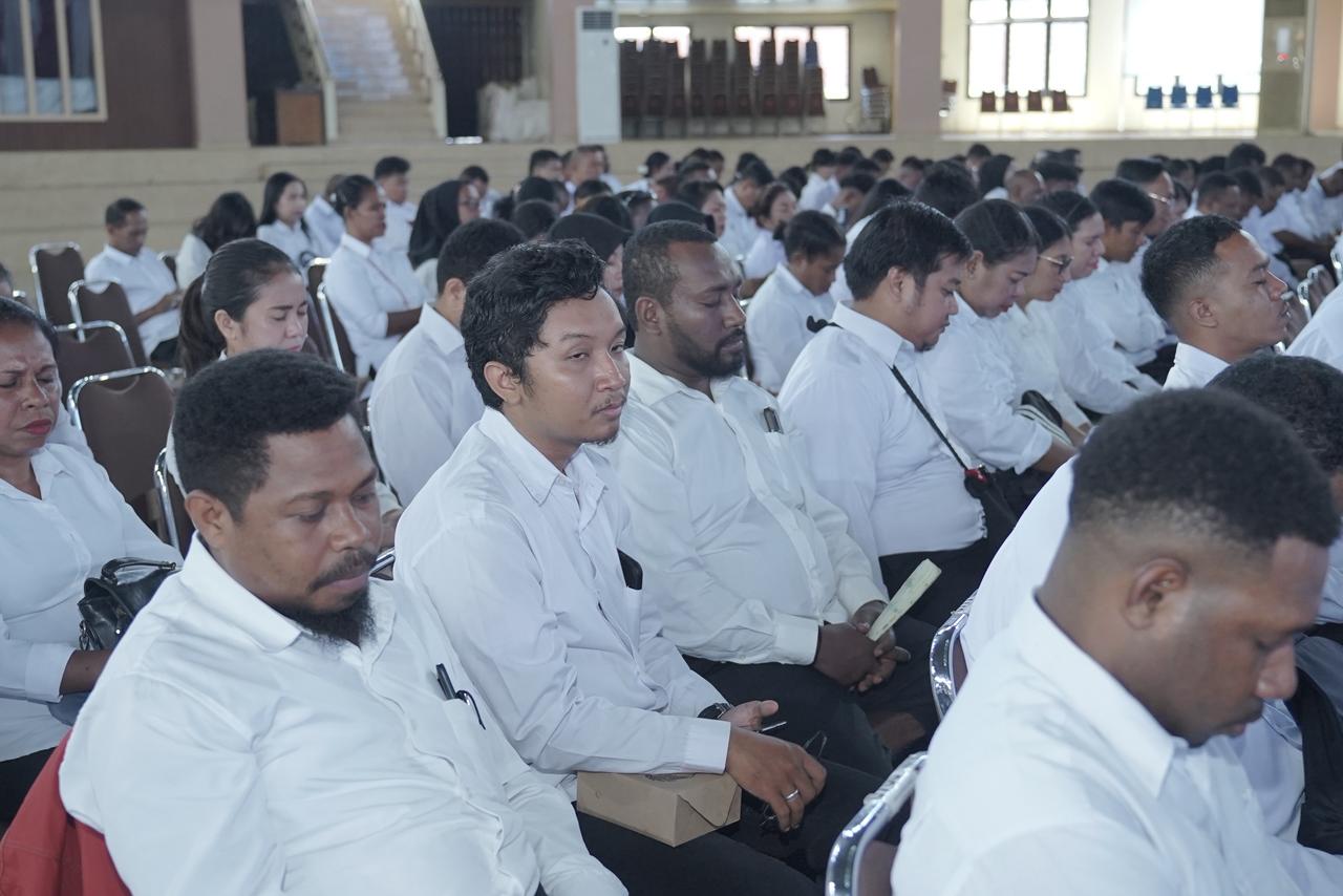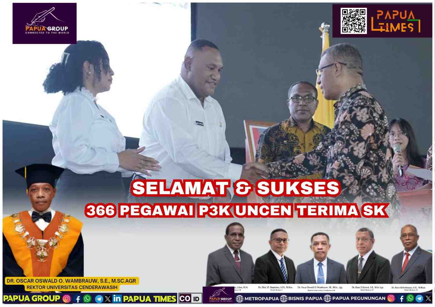 “Kita patut bersyukur, sebab hari ini merupakan hasil kerja panjang dari tim kepegawaian. Ada 336 staf yang selama ini bekerja di Uncen dengan status pegawai kontrak maupun tidak tetap, hari ini resmi diangkat sebagai Pegawai P3K. Artinya, mereka kini memiliki kedudukan hukum yang jelas dan perlindungan yang sama seperti Aparatur Sipil Negara (ASN),”jelas Kaiwai.