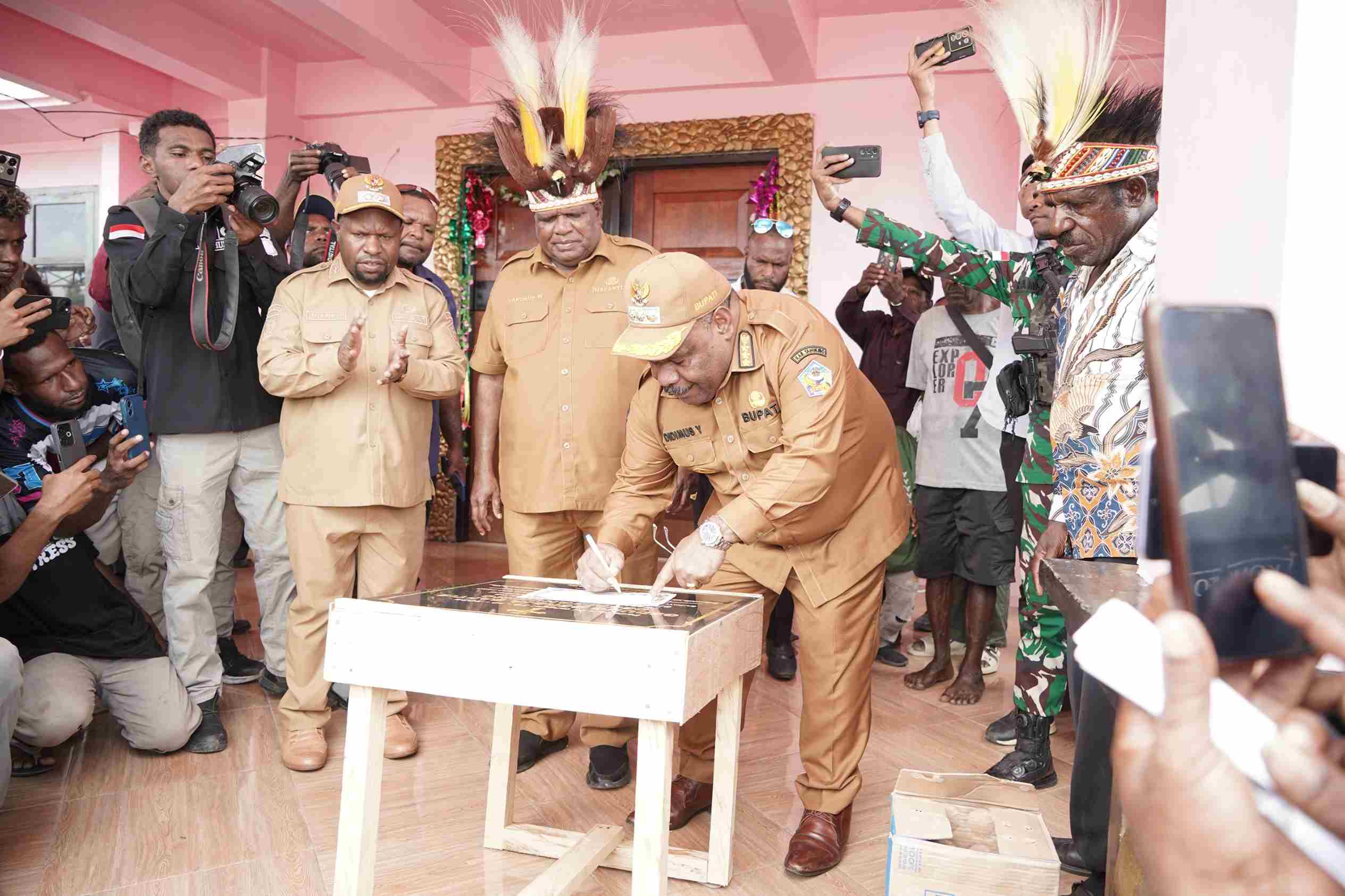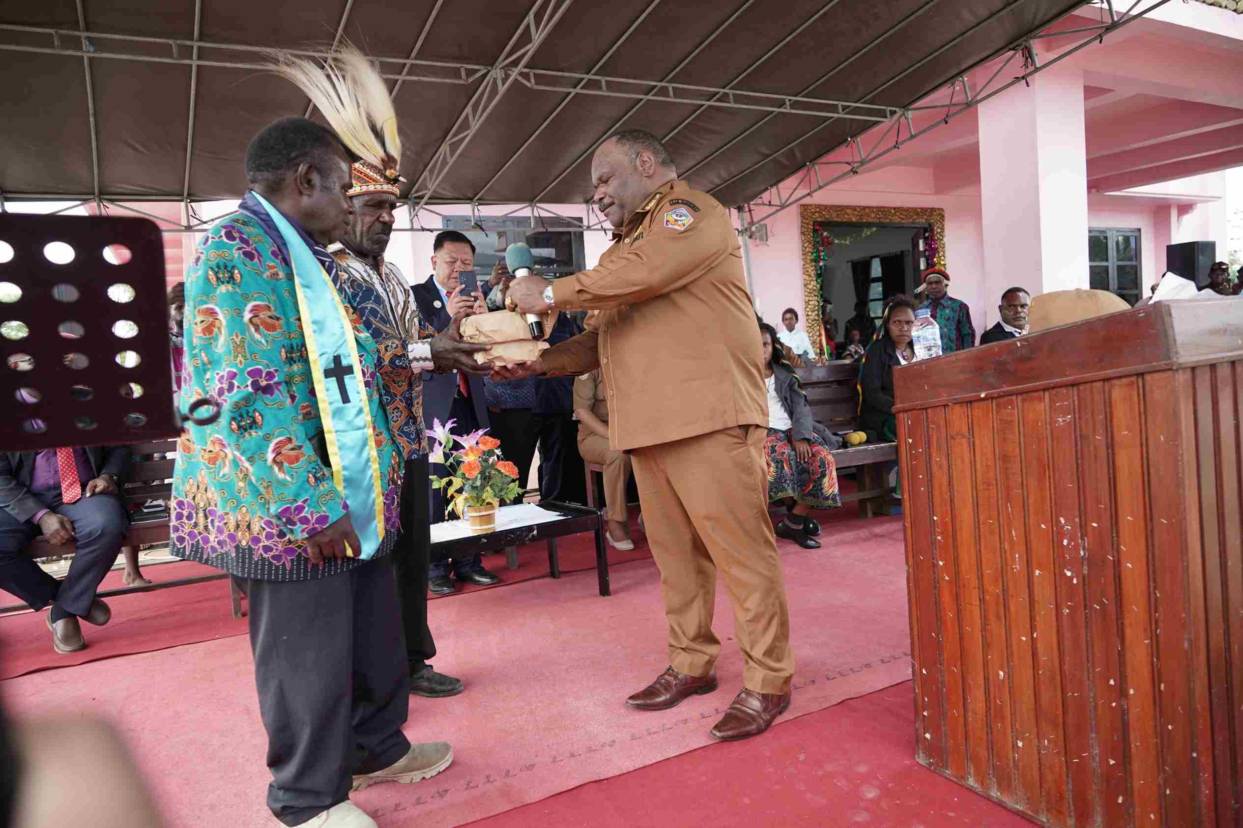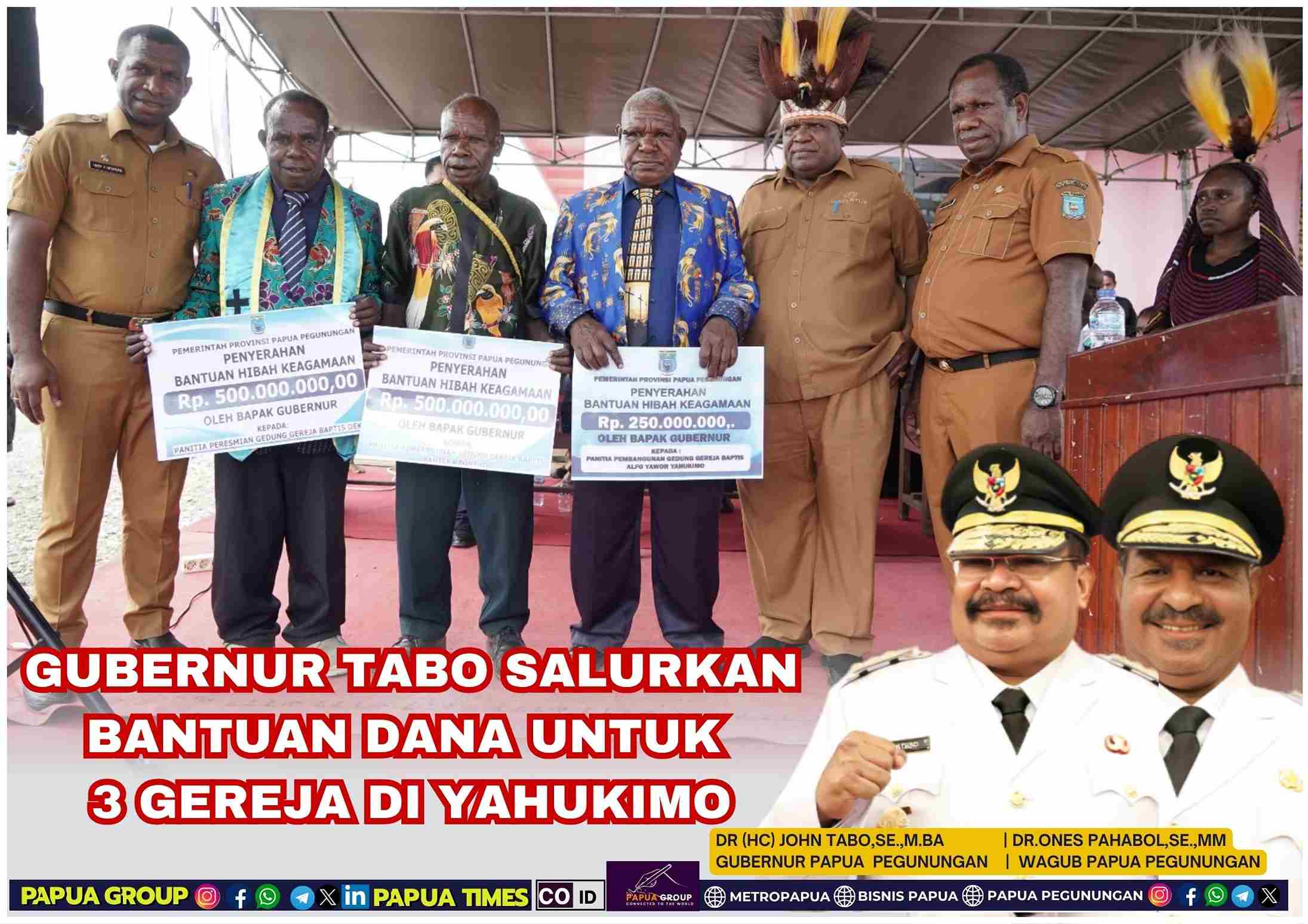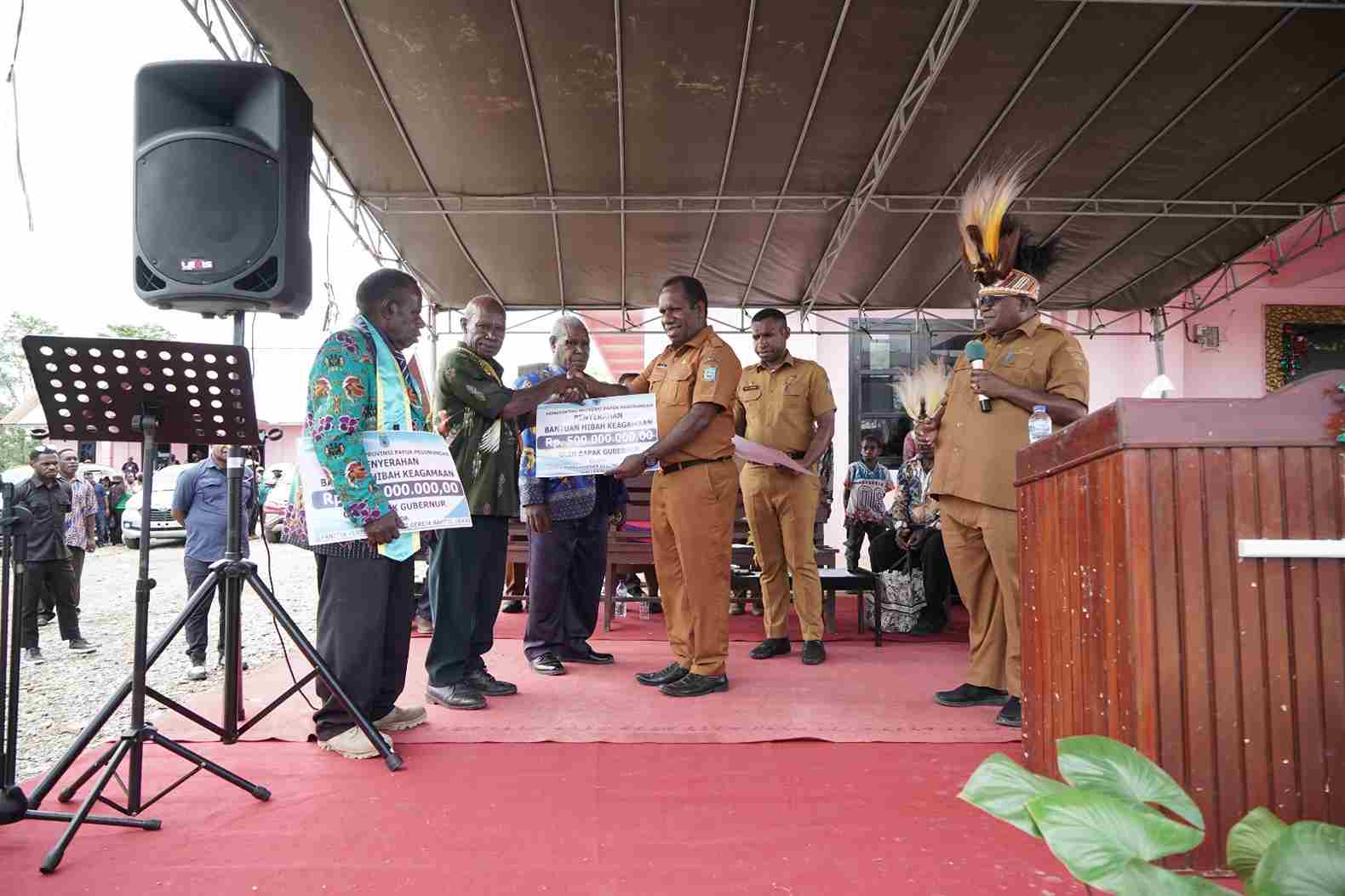 WAMENA | Gubernur Papua Pegunungan, Dr. Jhon Tabo menyerahkan bantuan dana Keagamaan sebesar Rp1,25 Miliiar untuk mendukung pembangunan Gereja di Kabupaten Yahukimo.