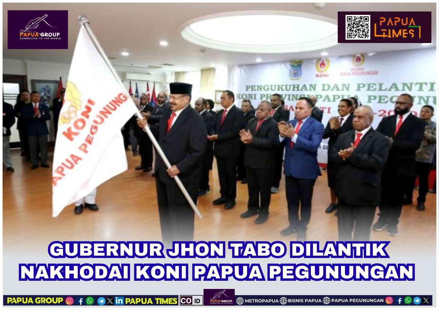 Ketum KONI Pusat Letjen TNI Purn Marciano Norman mengukuhkan dan melantik Ketum KONI Papua Pegunungan Dr. Hc. Jhon Tabo, SE, M.BA., masa bakti 2025-2029, pada 8 Desember 2025, di Kantor KONI Pusat Senayan, Jakarta.