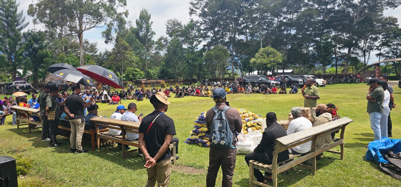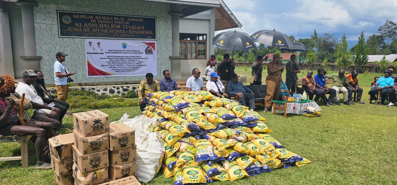 Bantuan Bapok berupa beras, gula, minyak goreng tersebut diserahkan Gubernur didampingi Ketua PKK Papua Pegunungan, Anggieta B Tabo bertempat di Gereja Weneroma Ilekma, Wamena, Kabupaten Jayawijaya, Selasa 22 Desember 2025.
