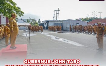 “Pertama-tama saya menyampaikan terima kasih kepada seluruh ASN yang sudah hadir hari ini. Kehadiran ini sangat signifikan walaupun belum mencapai 100%. Biasanya hanya 500 ke bawah, tetapi hari ini sudah 709 orang,” ujar Elai Giban.