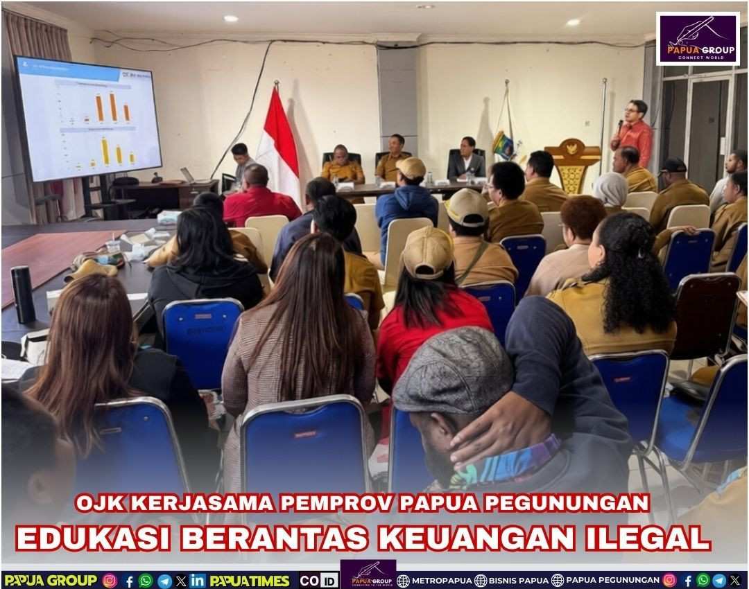 WAMENA | Otoritas Jasa Keuangan (OJK) Papua bekerja sama dengan Pemerintah Provinsi Papua Pegunungan menggelar kegiatan edukasi dan sosialisasi pemberantasan aktivitas keuangan ilegal bagi Aparatur Sipil Negara (ASN) di Aula Kantor Gubernur Papua Pegunungan, Senin, 2 Februari 2026.