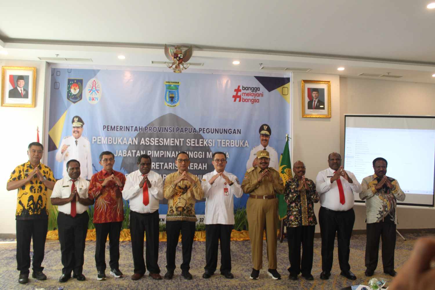 Sementara itu, Ketua Pansel Seleksi Terbuka Jabatan Pimpinan Tinggi Madya Sekretaris Daerah Provinsi Papua Pegunungan, Huntoyoyungo, M.Pd melaporkan asesmen seleksi terbuka JPT Madya Sekretaris Daerah Provinsi Papua Pegunungan dilakukan hari ini berupa asesmen kompetensi manajerial dan sosial-kultural.